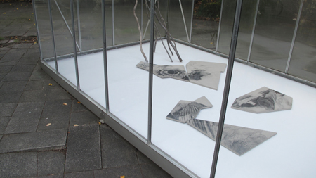 Kann eine Zeichnung Mimese betreiben? Mit dieser Fragestellung geht Nicole Schuck im super bien! Gewächshaus einer dokumentarisch, fiktiven Ortsanalyse nach. Auf dem Boden liegen bezeichnete Bodenelemente, die detailliert Bereiche eines lokalen Wildtieres zeigen. Dreidimensionale Linien erweitern die Bodenzeichnungen zu einer räumlich installativen Umgebungszeichnung. Ähnlich einem Wildtier in der Stadt ist die dreidimensionale Zeichnung von Nicole Schuck daran interessiert, die Bedingungen des Glashauses und seiner Umgebung optimal zu nutzen und einzubeziehen.